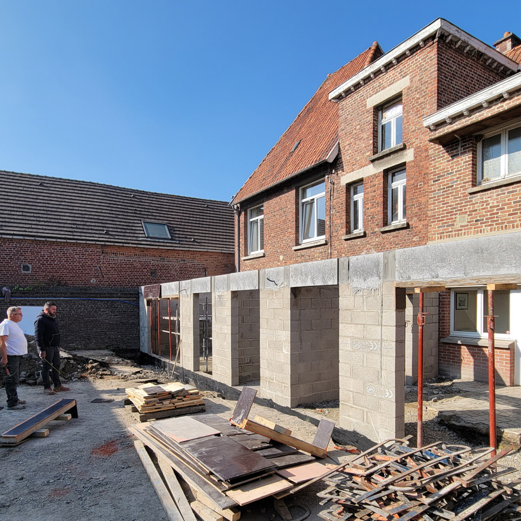 Les menuiseries de l’extension à Mesvin sont posées. Le clos couvert se termine.
